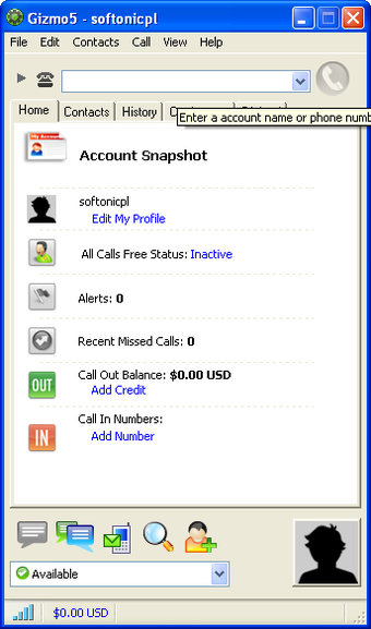 Interfejs Gizmo5 jest dość przejrzysty i obsługa programu nie sprawia trudności. W pierwszym momencie ogromna ilość przycisków może zniechęcać, ale po chwili negatywne wrażenie mija. Wszystkie funkcje rozmieszczono intuicyjnie.